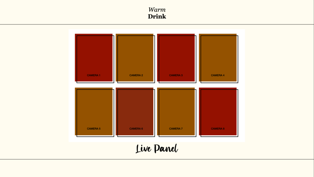 Whether you're presenting solo, hosting a panel, or managing interactive sessions, the Warm Drink template has you covered. It includes layouts for 1, 2, 3, 4, 6, and 8 cameras, making it ideal for any scenario. And if a camera is turned off, there's no need to worry—each scene automatically displays a stunning color background, ensuring a polished and cohesive look throughout your presentation.