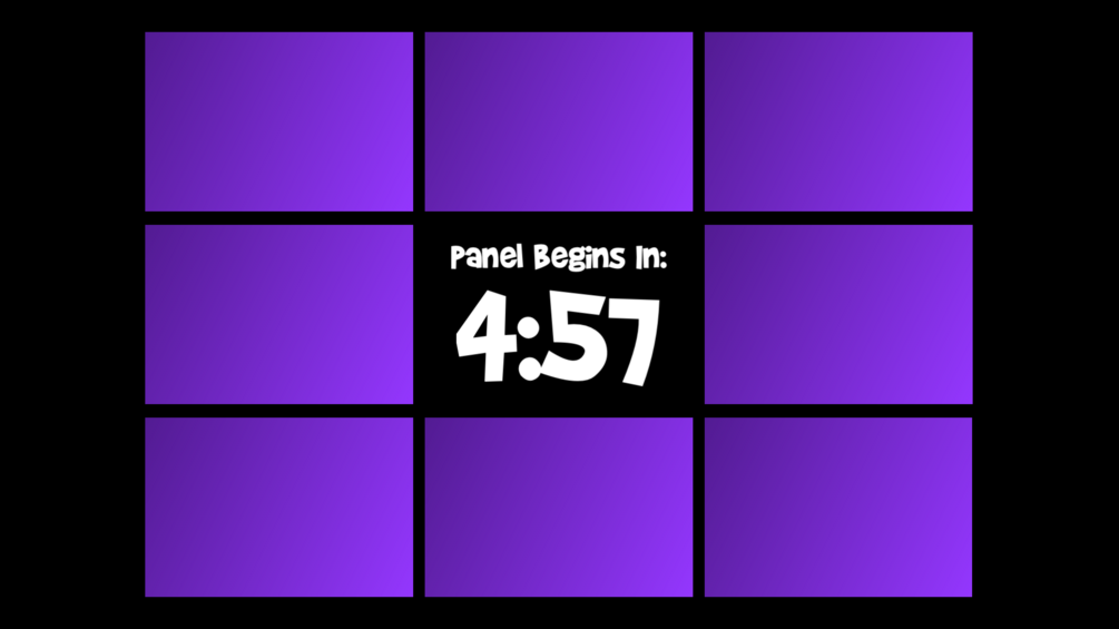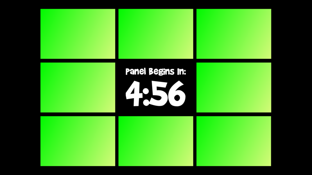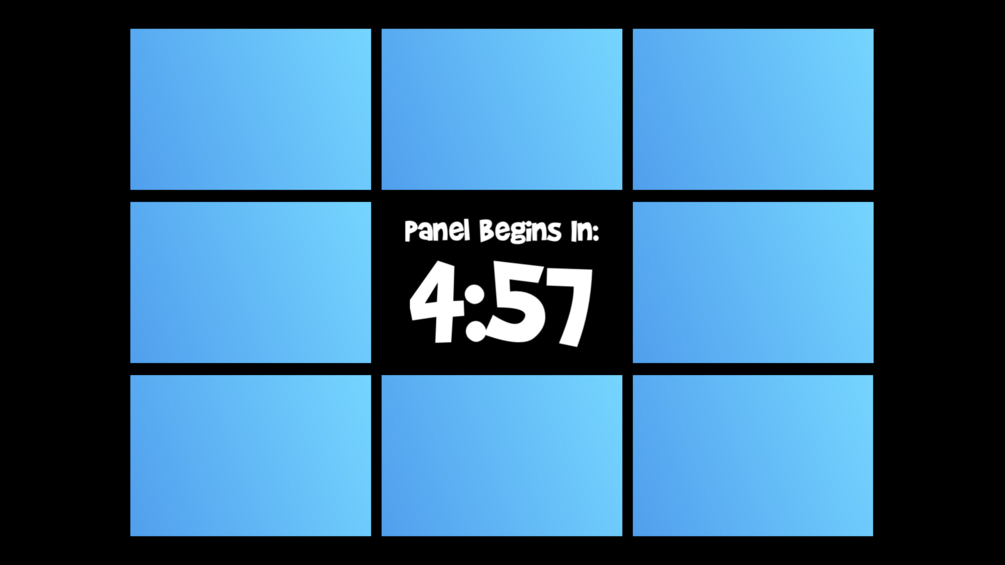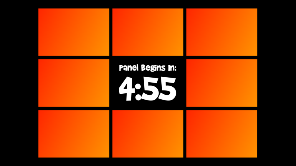 Bring a nostalgic touch to your live streams with the Brady Grid Countdown, inspired by the iconic Brady Bunch opening title sequence. This fun and engaging design is perfect for showcasing up to 8 panelists, making your Zoom meetings and webinars lively and memorable.